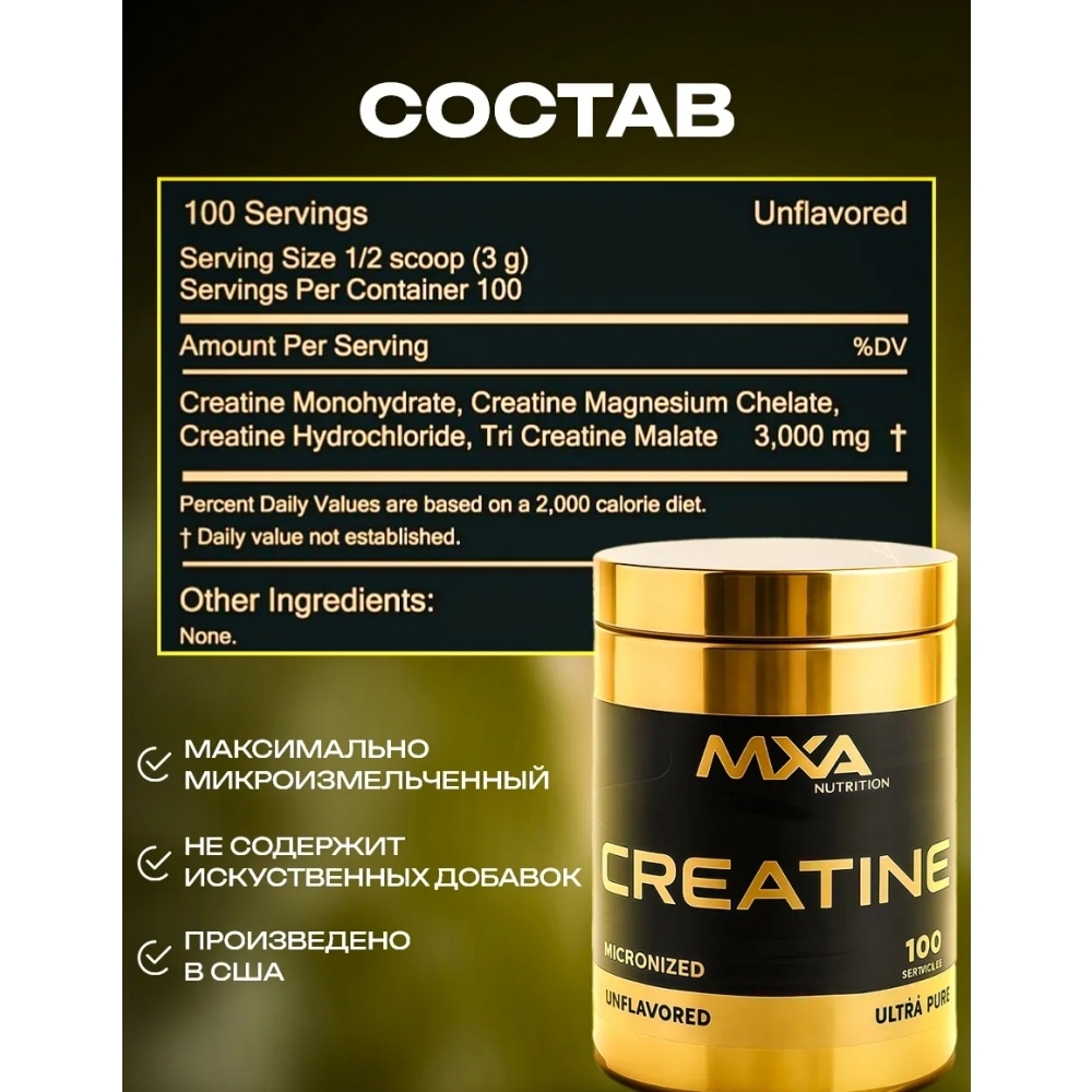 Креатин моногидрат — это популярная спортивная добавка, которая помогает улучшить физическую производительность и ускорить восстановление после интенсивных тренировок. Порошок от MXA представляет собой высококачественный продукт, содержащий чистый моногидрат креатина, идеально подходящий для спортсменов и активных людей. Он способствует увеличению силы и выносливости, что делает его незаменимым в процессе подготовки к соревнованиям.