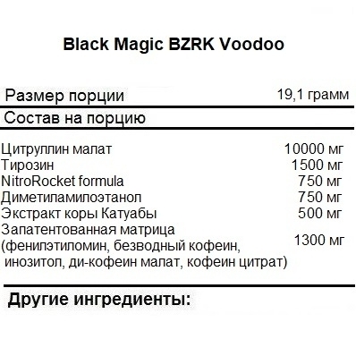 Интернет-магазин Body-Pit.Life предлагает купить Предтренировочный комплекс Black Magic BZRK VOODOO 475 гр в Волжском.