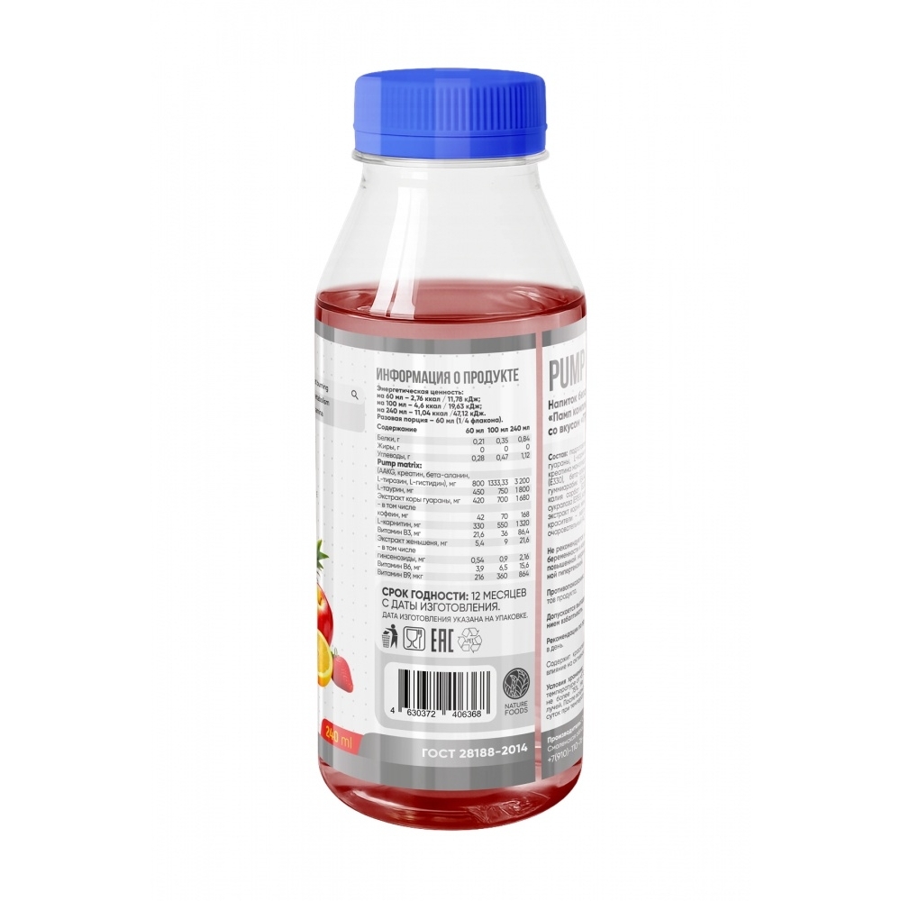 Предтренировочный комплекс Nature Foods Power Drink Pump complex 240 мл